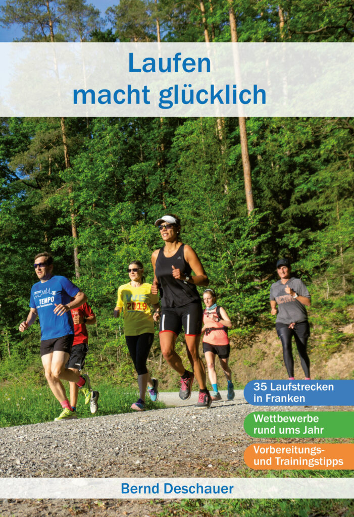 Bereits 2019 schrieb ich an meinem neuen Buch, das im Herbst 2020 erscheinen sollte: Laufen macht glücklich – ein Buch mit Tipps zum Laufen, Strecken zum Nachlaufen und Wettbewerben in Franken.