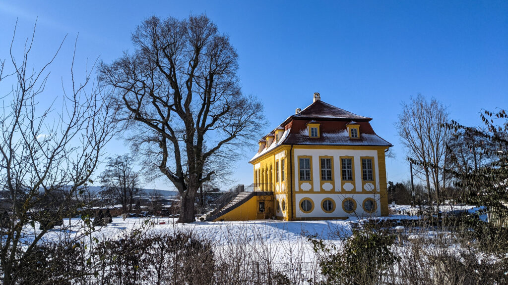 Wir liefen entlang des Radwegs Richtung Hallstadt und folgten dem Main bis Dörfleins, wo wir einem schmalen Trail am Waldrand folgten. Ein sehr schöner Weg, der Teil des 7-Flüsse-Weges ist und den ich sehr gerne laufen, besonders im Sommer mit den beiden Kellern. Durch die Kälte war der schneebedeckte Weg gut laufbar und in einem ständigen Auf und Ab ging es in einem guten Tempo vorwärts. Nach etwa 12 Kilometern erreichten wir Baunach mit seinen schönen Fachwerkhäusern.