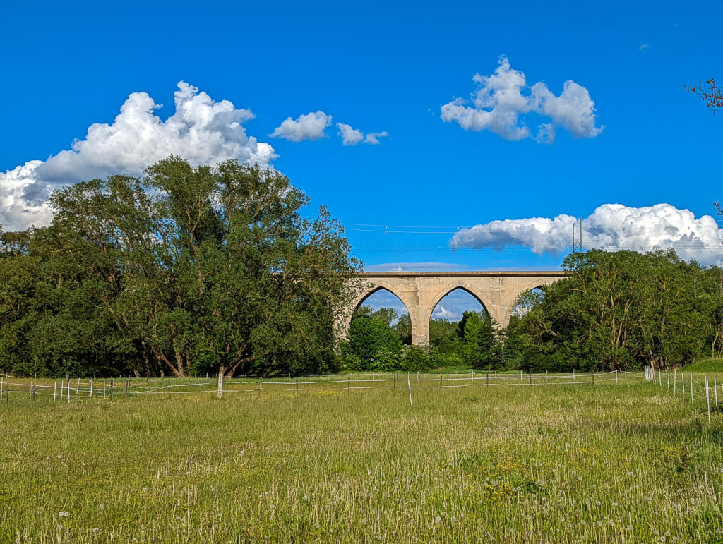 Durch eine Brückenbaustelle verlief ich mich erst einmal, fand aber dann doch meinen Weg. Ich querte den Fluss an der Baustelle und lief auf der nördlichen Seiten an der Saale entlang. Teilweise war der Weg mit Brennnesseln zugewuchert, so dass das Laufen hier keinen Spaß machte.